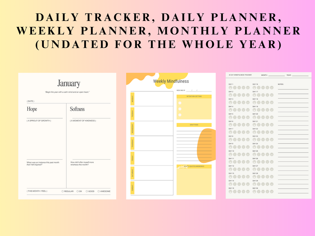 The Complete Mindfulness Planner Bundle | 30-Day, Weekly & Monthly Trackers